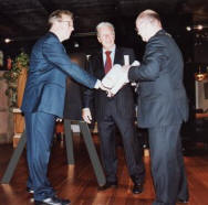 Ridder ontvangen uit handen van burgemeester Fons Hertog de oorkonde die het